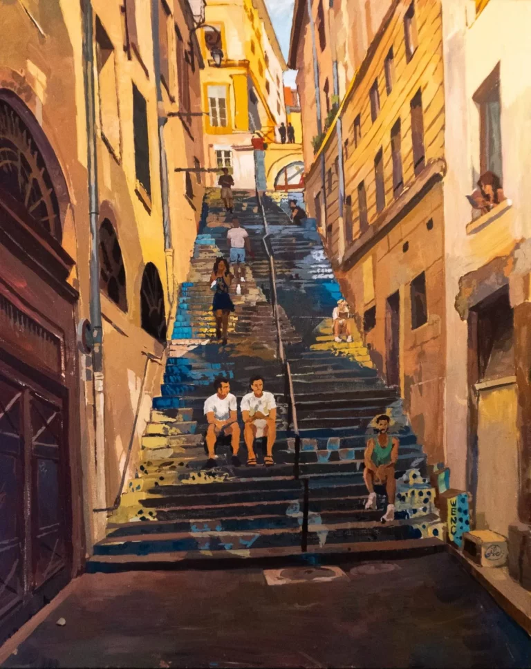 Originaire de Lyon, il puise dans l’effervescence artistique de sa ville natale pour nourrir sa démarche, tout en affirmant une identité picturale indépendante et affirmée. Toujours en quête d’expérimentation, Julien explore des médiums variés tels que l’acrylique, l’encre, le pastel ou encore la gravure. Son approche plastique, à la fois instinctive et structurée, l’amène à questionner les rapports entre surface, matière et narration. Chaque œuvre est pensée comme un fragment de récit, un espace de tension entre abstraction et signification.