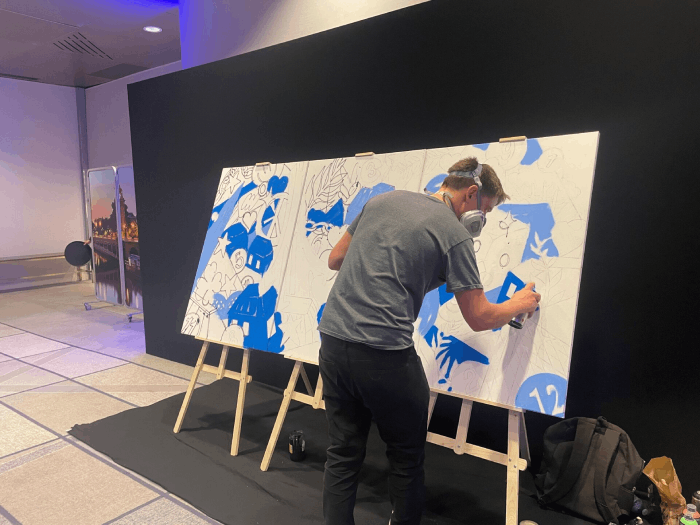 Pour vous donner un exemple de peinture en direct lors d’un événement d’entreprise, voici un cas que nous avons réalisé pour une société.